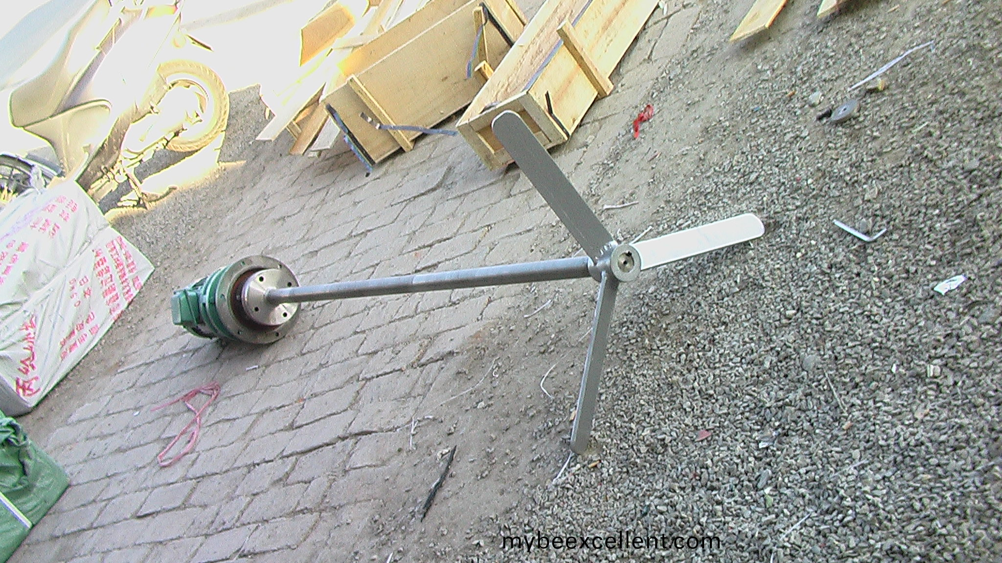 JBJ型(xing)桨(jiang)式(shi)搅拌机如(ru)图(tu)所示,由搅(jiao)拌轴、搅(jiao)拌桨(jiang)叶(ye)、机座(zuo)和驱动装(zhuang)置(zhi)等(deng)结构(gou)组成。当原(yuan)水与(yu)混(hun)凝剂(ji)或(huo)助(zhu)凝剂液(ye)体流(liu)经混合池(chi)时(shi)在搅拌(ban)机(ji)的(de)排液(ye)作用下(xia)产生流(liu)动(dong)循(xun)环(huan),使(shi)混凝(ning)药(yao)剂(ji)与水快速(su)充(chong)分混合(he),以(yi)达(da)到(dao)混凝工(gong)艺的(de)要求。